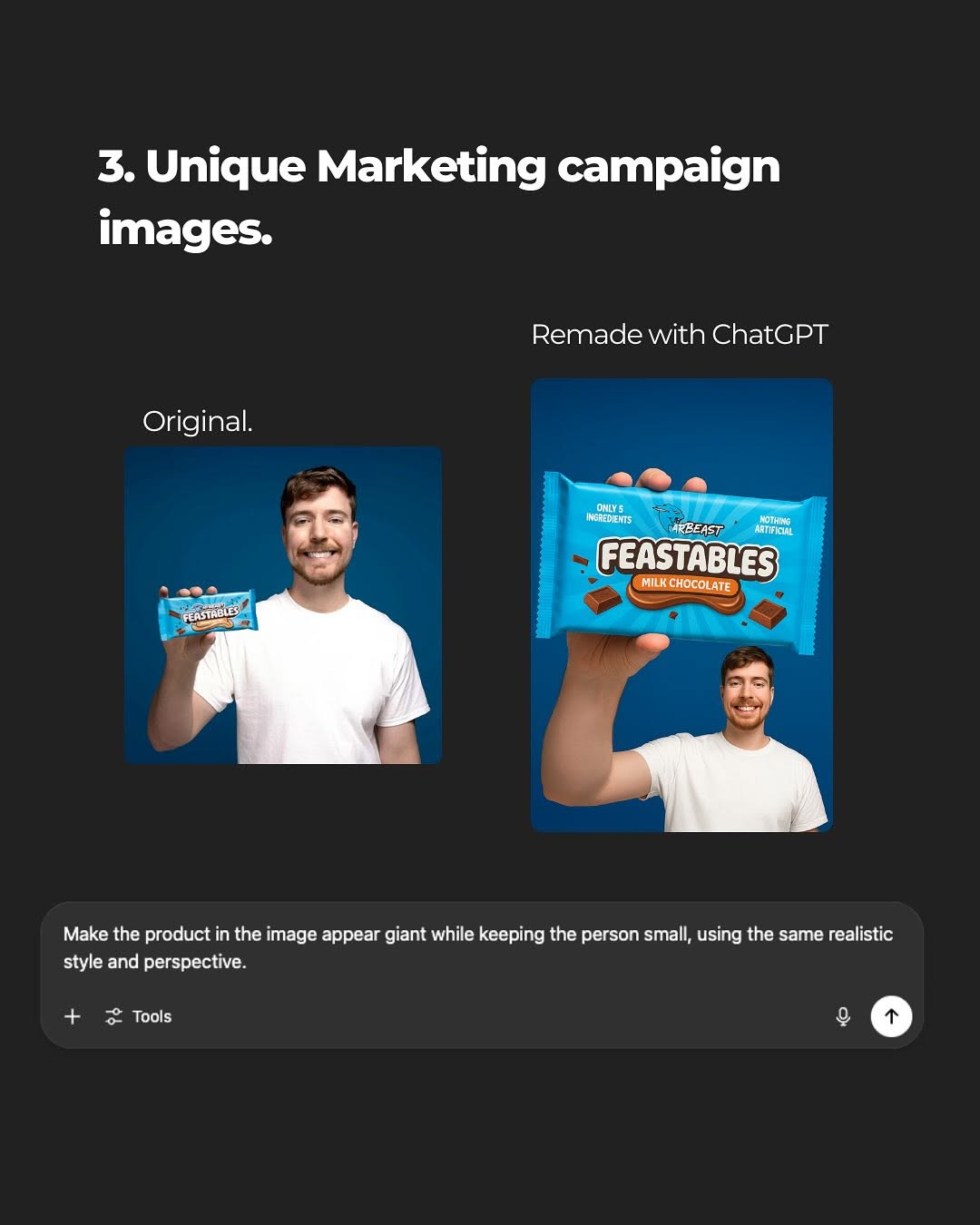 - Every prompt is tied to a visible before-and-after, so viewers instantly grasp the power of AI.