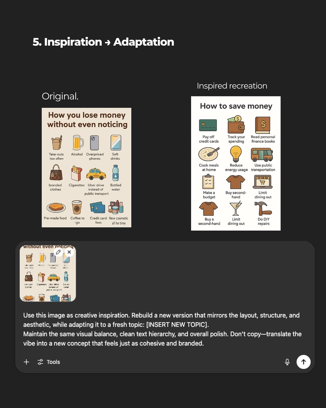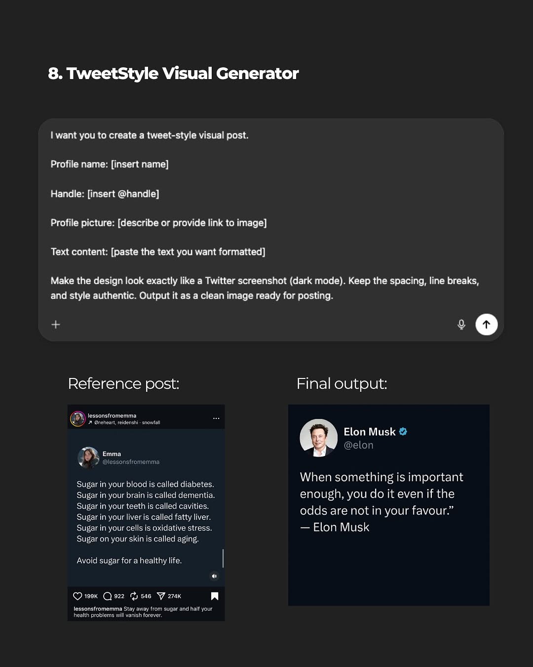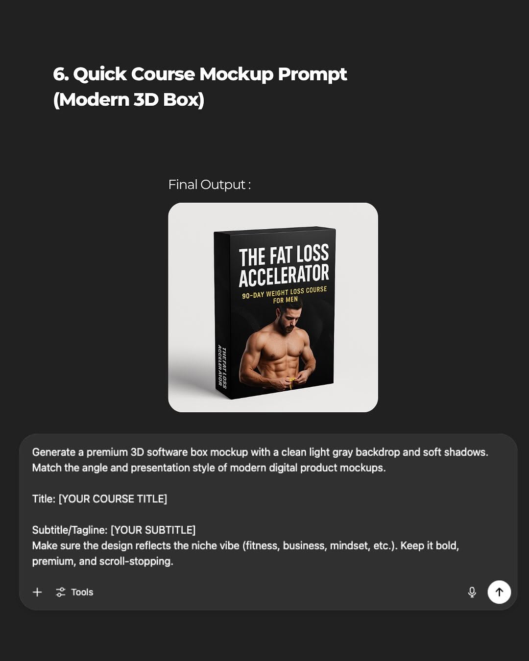 Swap in your own niche and recreate each frame: a thumbnail makeover, a headshot-to-logo transformation, a product shot glow‑up, an infographic outline, and a tweet-style quote. Then end with a lead magnet that bundles all your prompts into one irresistible kit.