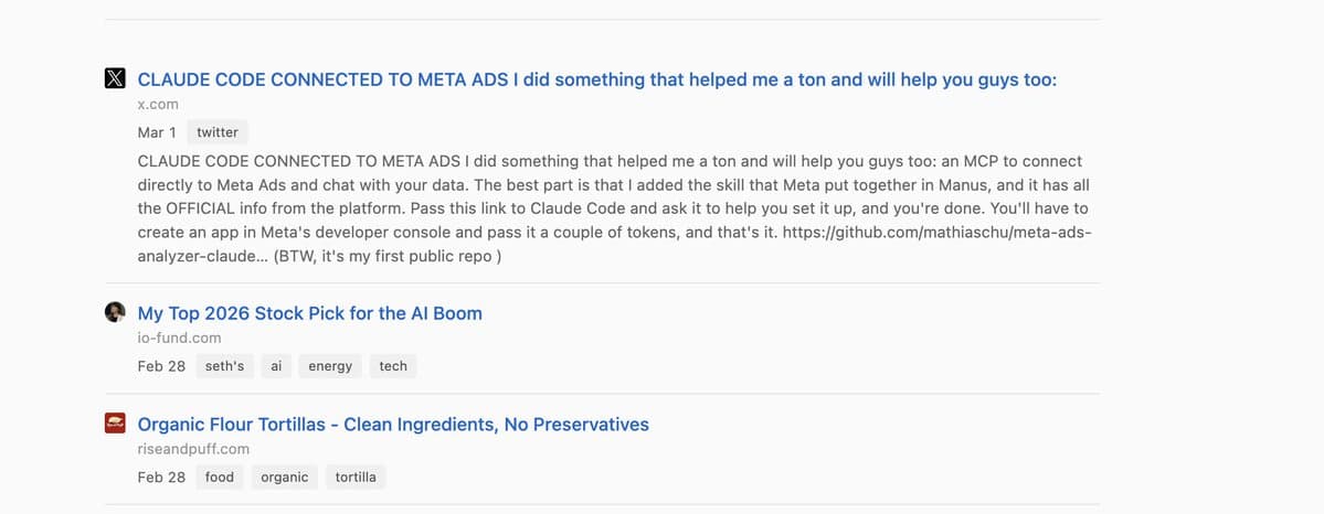 The Kindle highlight sync page is basically Readwise-lite. The bookmarking list looks like an MVP of Pocket or Raindrop. The 2FA helper is a single dropdown that auto-copies codes. Ten years ago, each of these would feel like a full startup. Today they are weekend side quests. Shipping software is now the easy part; getting anyone to care is the real project.