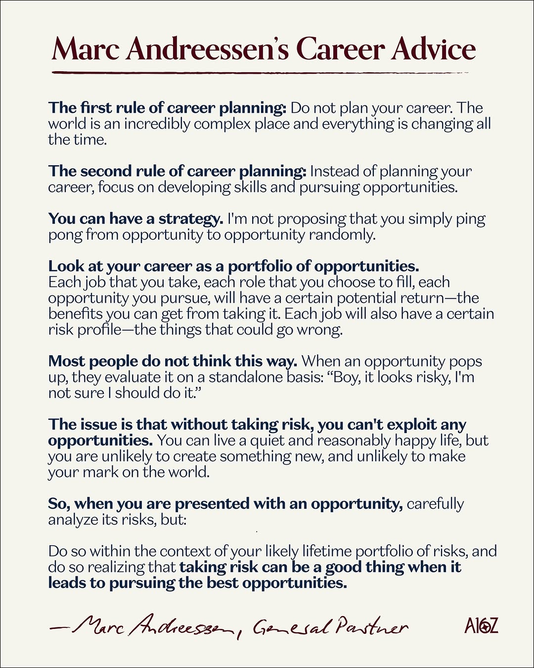 - Treat your career as a portfolio of bets, not a single perfect job.