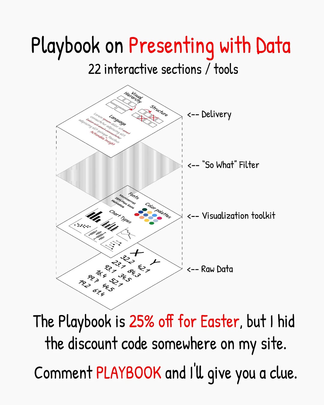 Want more comments without begging for them? Hide a discount in a mini Easter egg hunt. This @chartosaur post turns a dry data-visualization course into a game where the prize is 25% off and the admission price is a single comment.