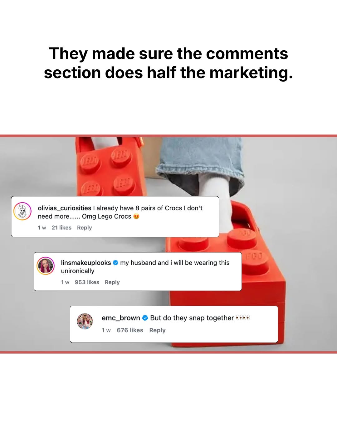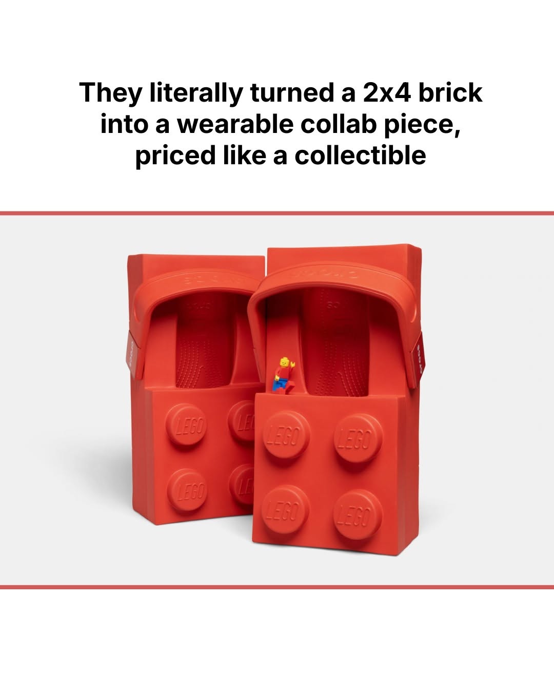 Those red LEGO brick clogs do not look real. They look like a Photoshop joke that somehow escaped the screen. And that is the entire point. When your product looks meme‑ready, every photo, roast, and unboxing is free advertising.