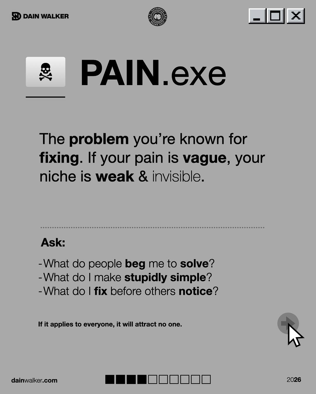dainwalker Most people don’t have a niche problem. They have a memorability problem. They sit there like,...