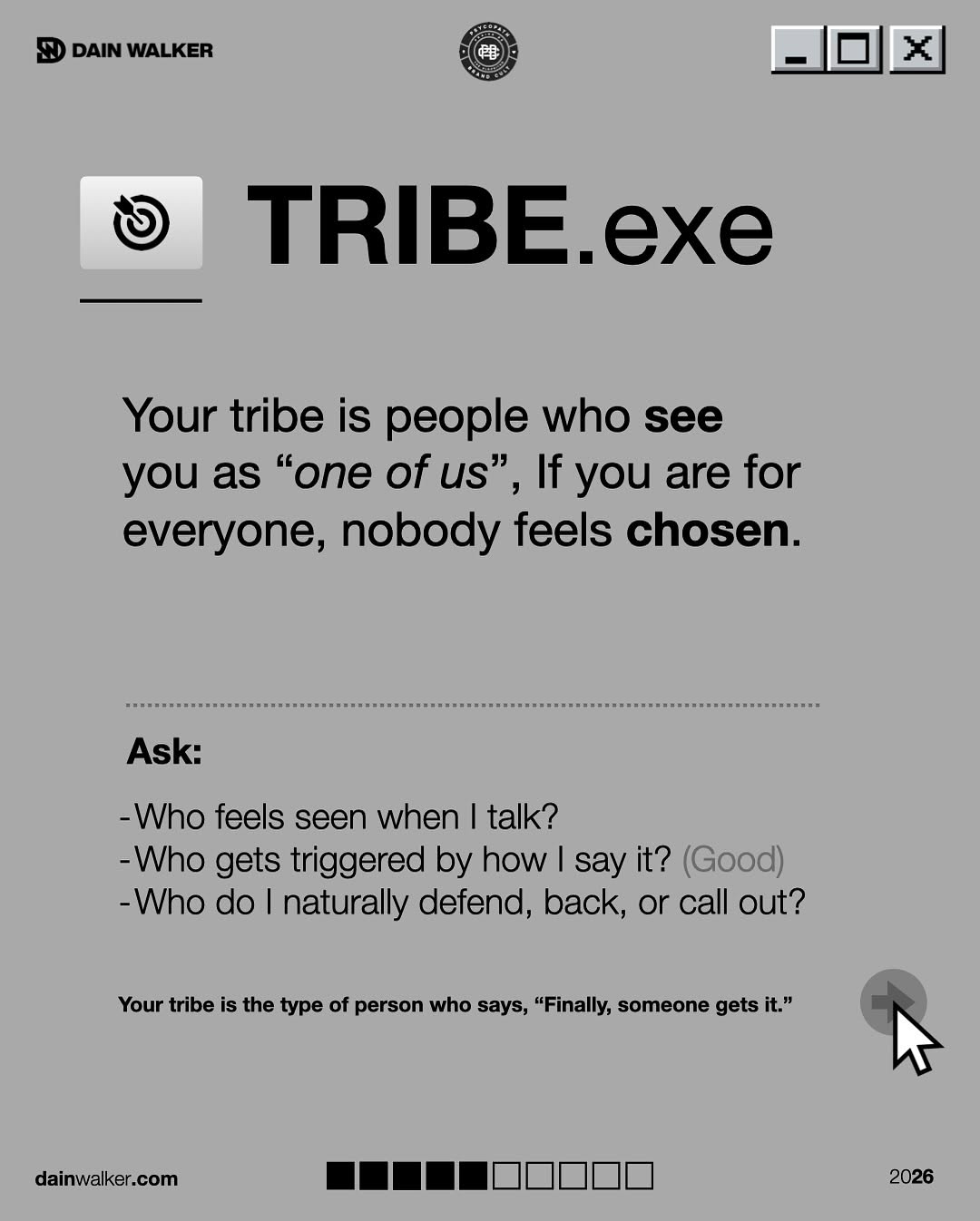 Pain.exe is the sharp, specific problem you’re famous for fixing. Tribe.exe is the pocket of people who hear you and think, “Finally, someone like me.” Proof.exe is the repeatable receipts you show so trust happens before the sales call. Signal.exe is the line, concept, or style that lodges in their brain so they quote you when you’re not in the room.