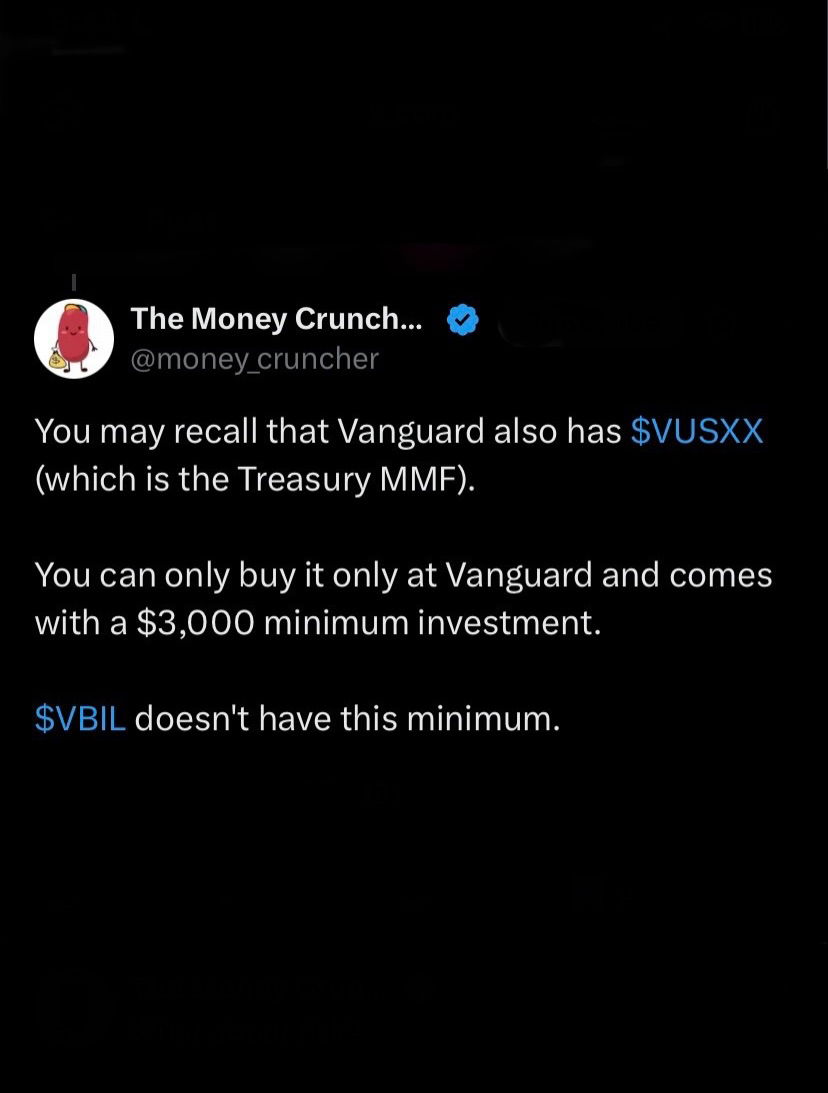 - No $3,000 minimum like VUSXX, making the fund feel as accessible as a checking account.