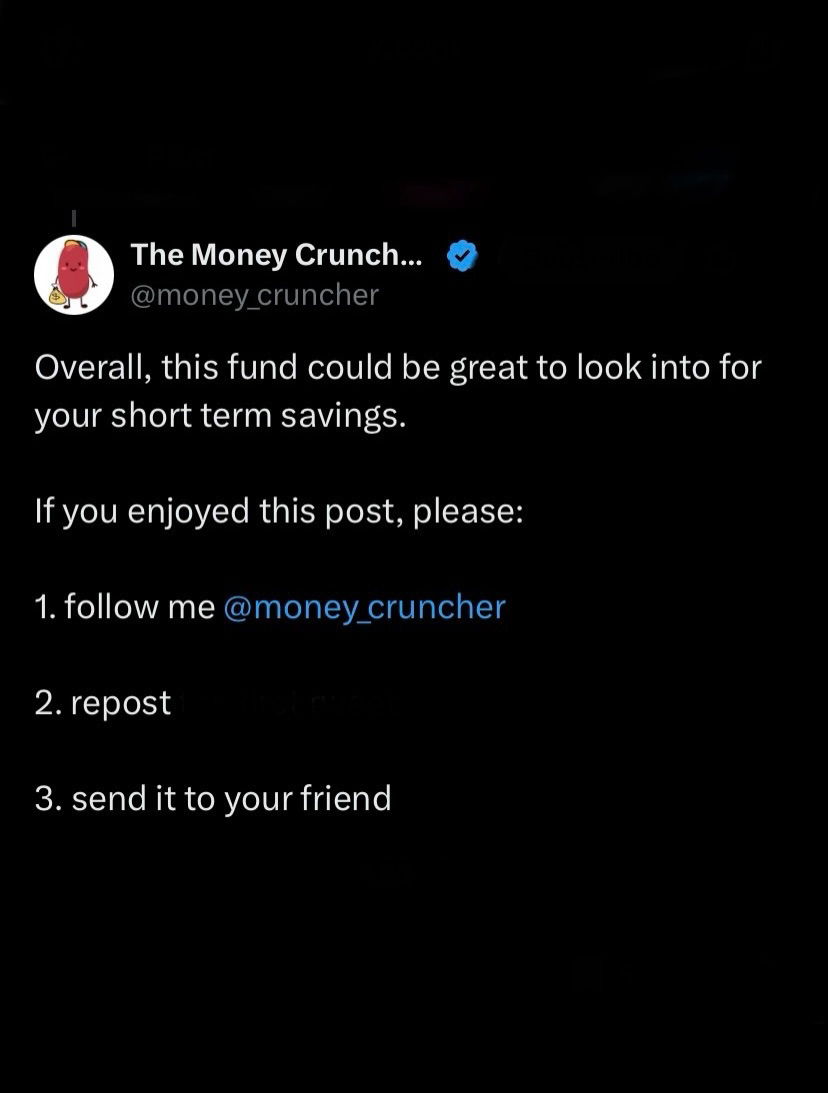 themoneycruncher Follow me @themoneycruncher for more tips! The new fund can replace your savings account. It holds...