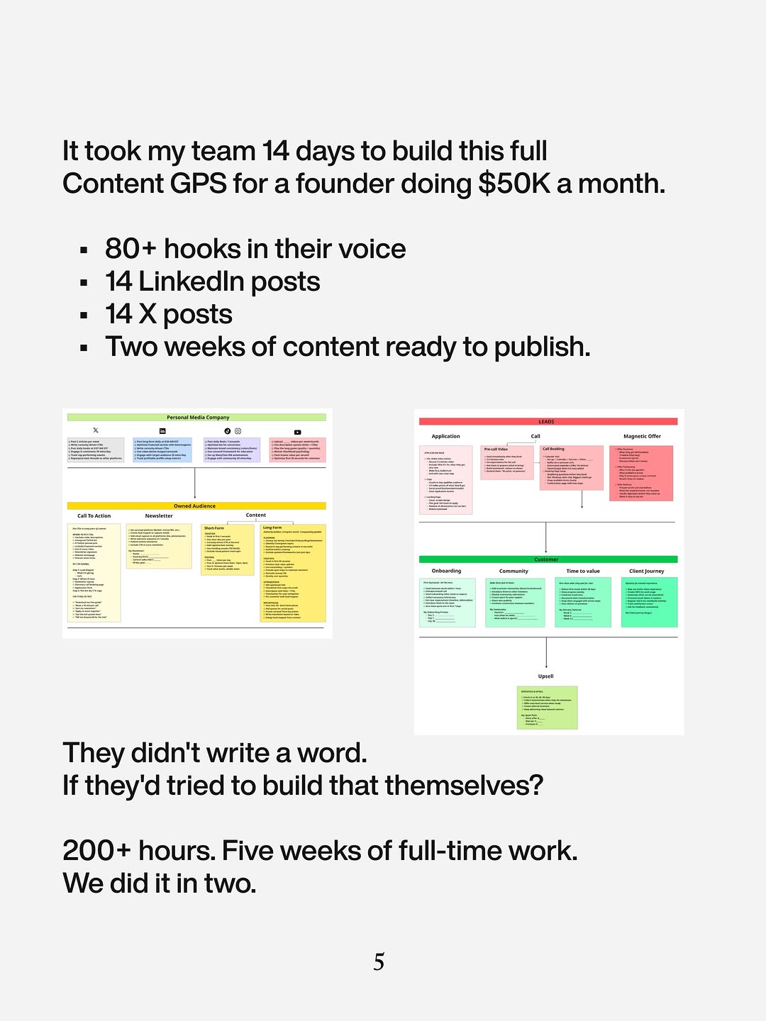 - Specific assets are named (hooks, posts, automations, funnels) to make “37 handmade assets in 60 days” feel concrete.