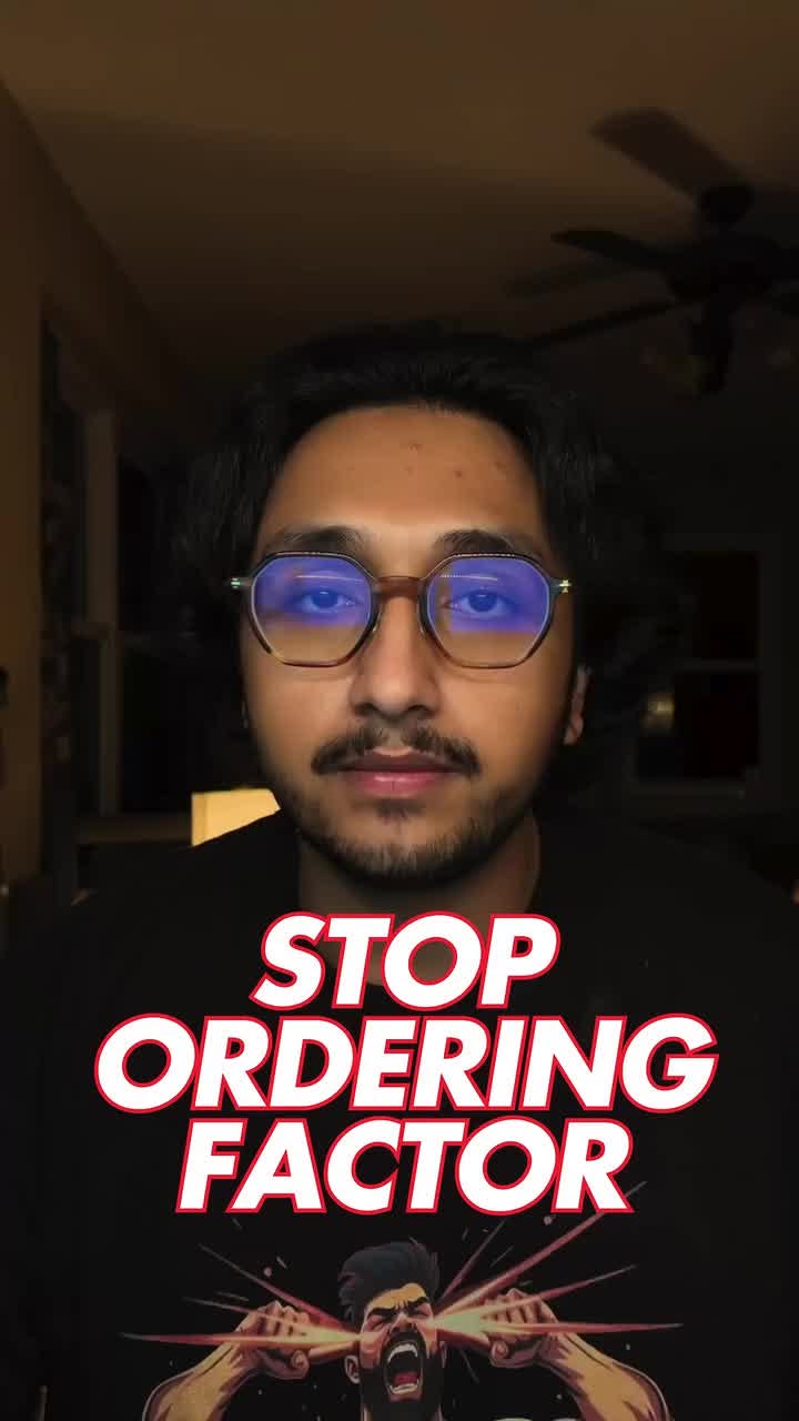 This reel is a local-food grenade thrown at national meal-delivery brands. The entire thing hinges on one aggressive visual: a dead-serious face floating over giant red text that screams, “STOP ORDERING FACTOR.” It is simple, loud, and impossible to scroll past.