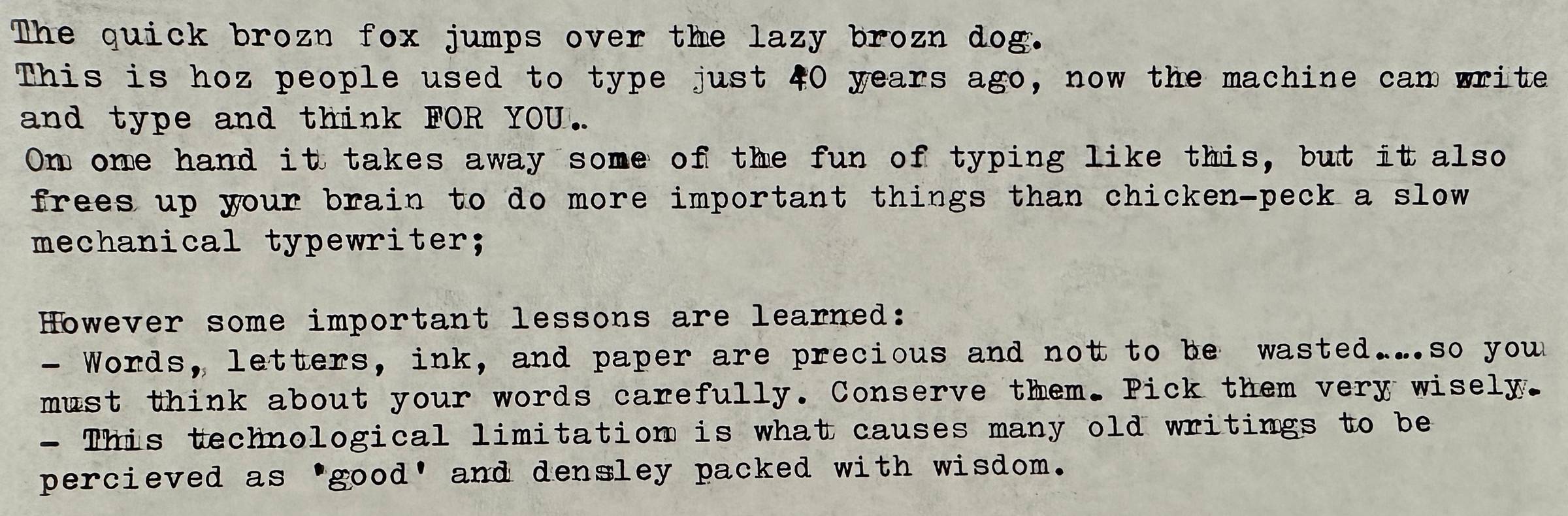 One interesting observation: Since you are manually putting ink on paper, and can't erase, you think VERY HARD before typing!