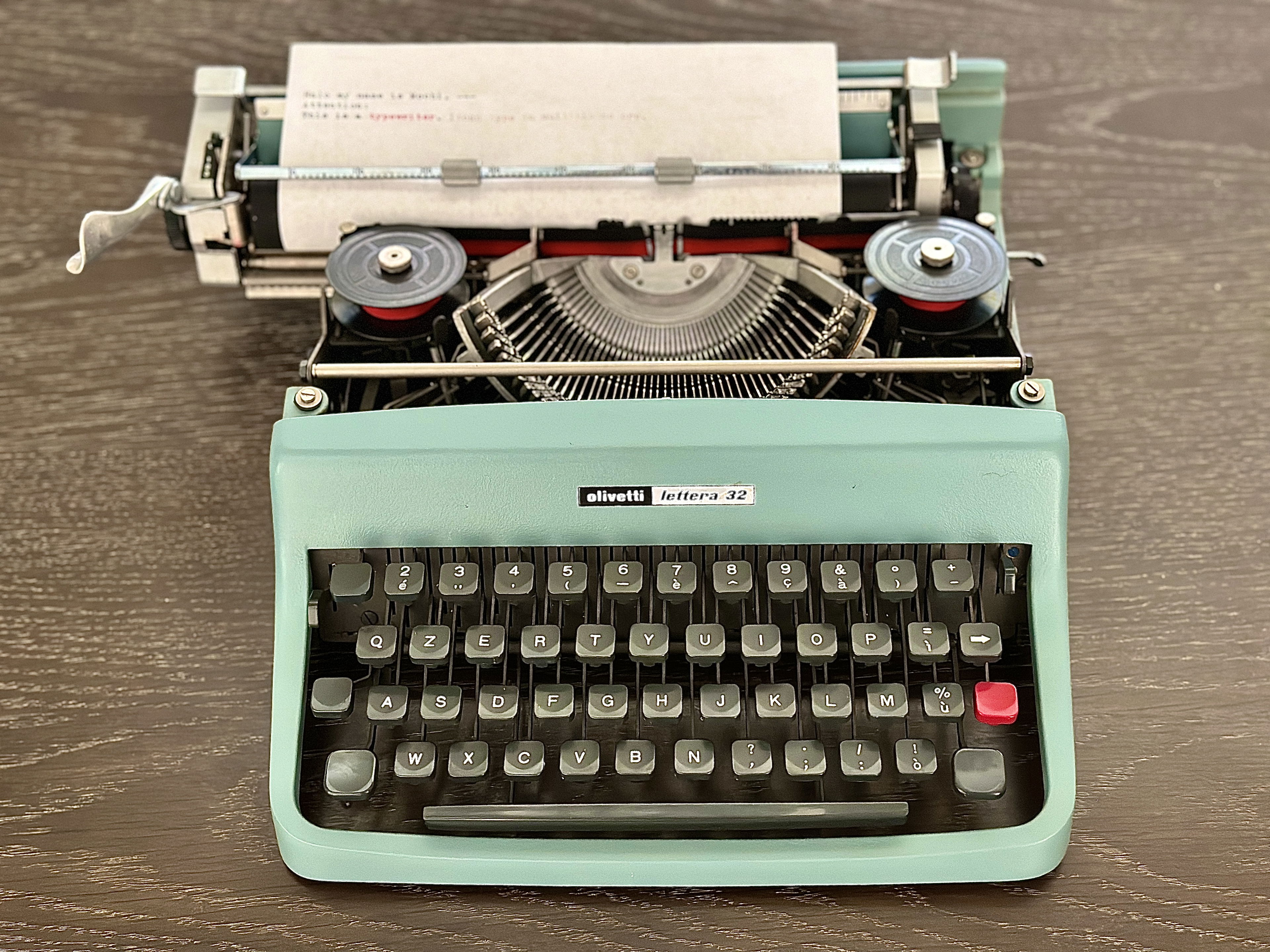 The founder of an A.I. company (Paul Yacoubian of Copy.ai) sent me this awesome Olivetti Lettera 32 manual typewriter from the 1960's!