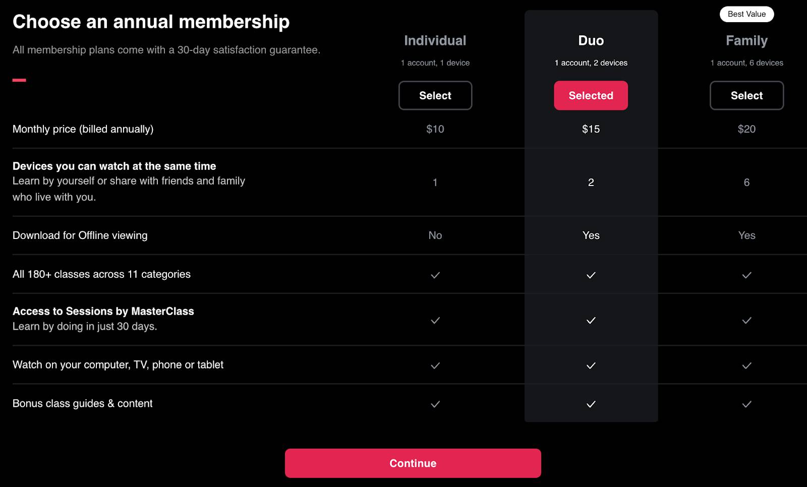 At this point you are a bit more “invested” in buying the membership rather than just sticking a pricing sheet in your face. Very clever!
