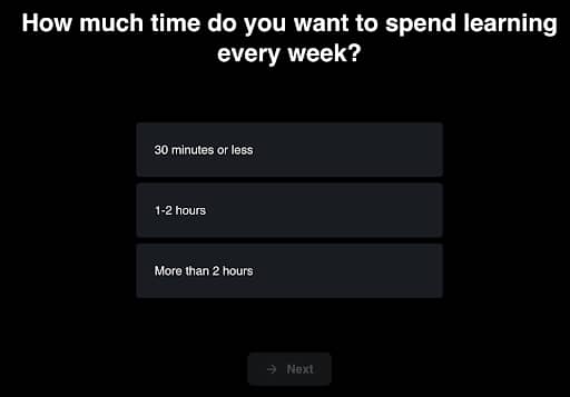 Step 3.) They give you another quick “survey” which asks your dedication level.