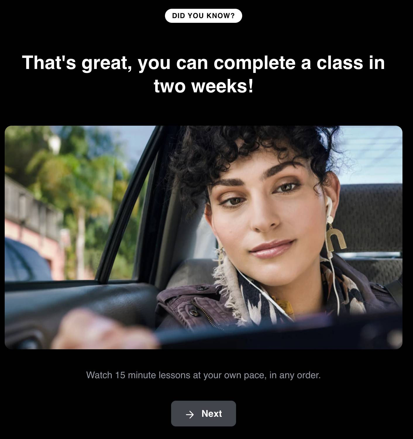 Step 4.) Based off your answer it shows how long it will take to complete a class, giving a little “customization” to this sales sequence: