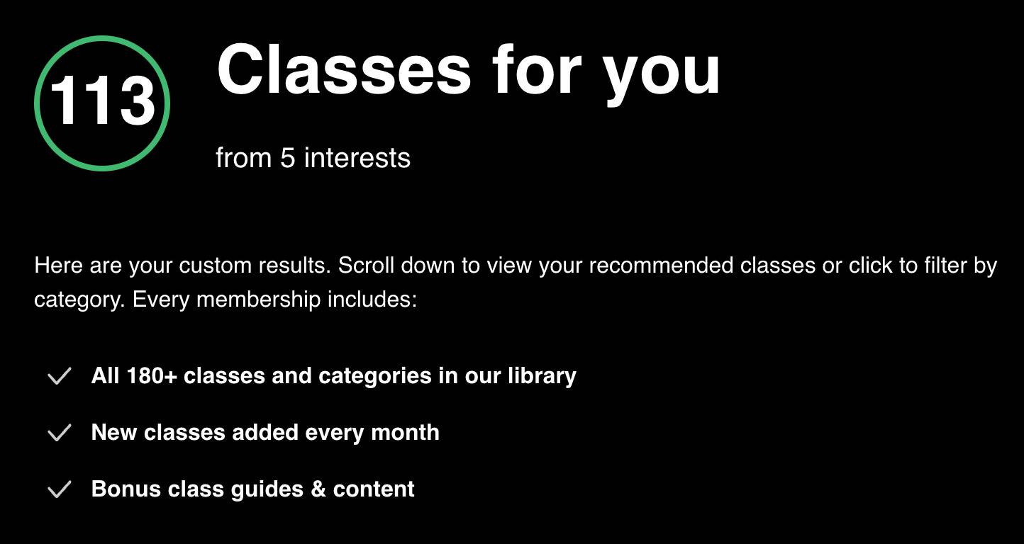 Step 5.) It then gives the amount of classes you’d be interested in based off your Step 1 survey answers: