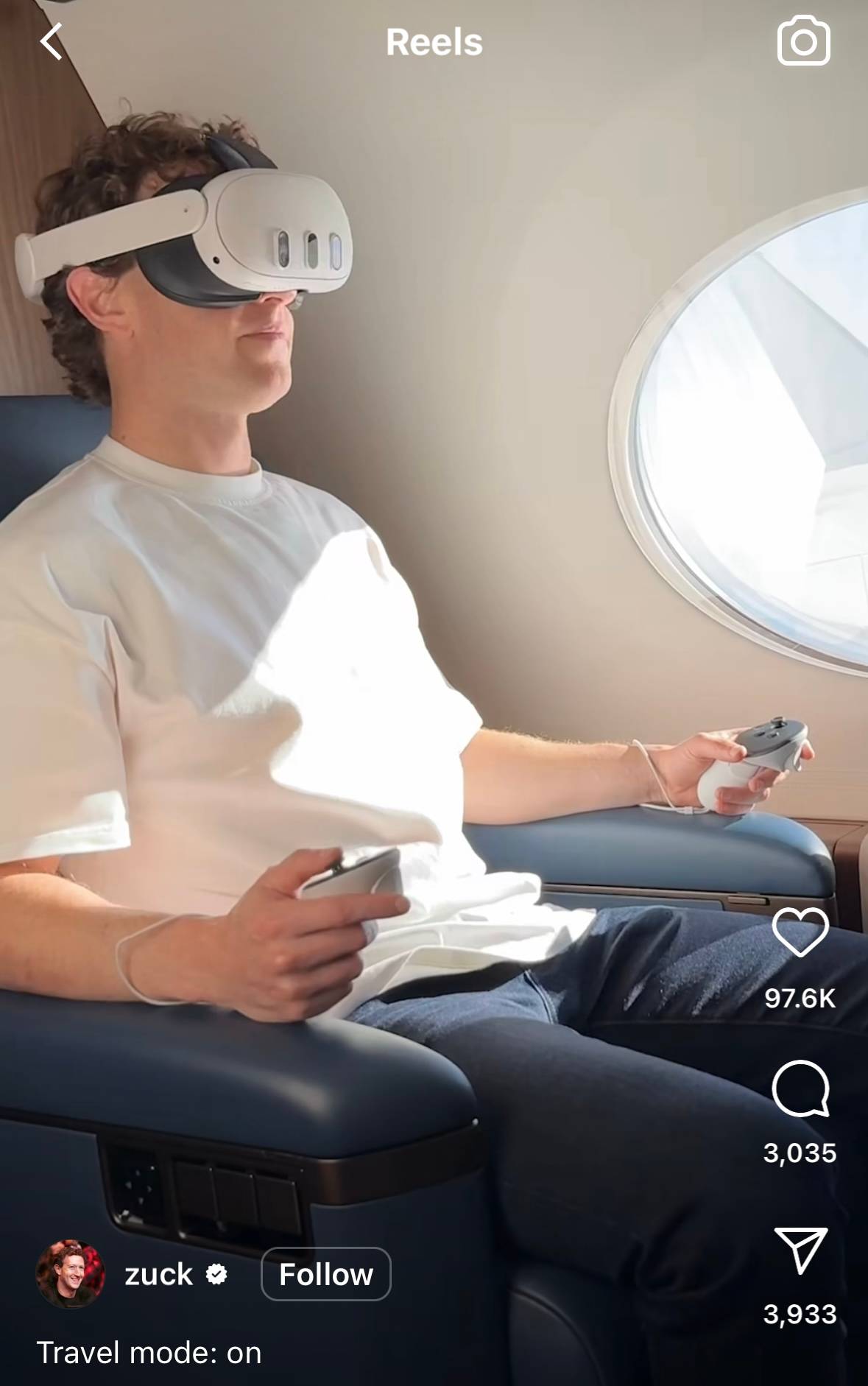 I just thought Zuck demo'ing Quest from his private jet is one of those things half the people will think is awesome, and half the people will make fun of 😂