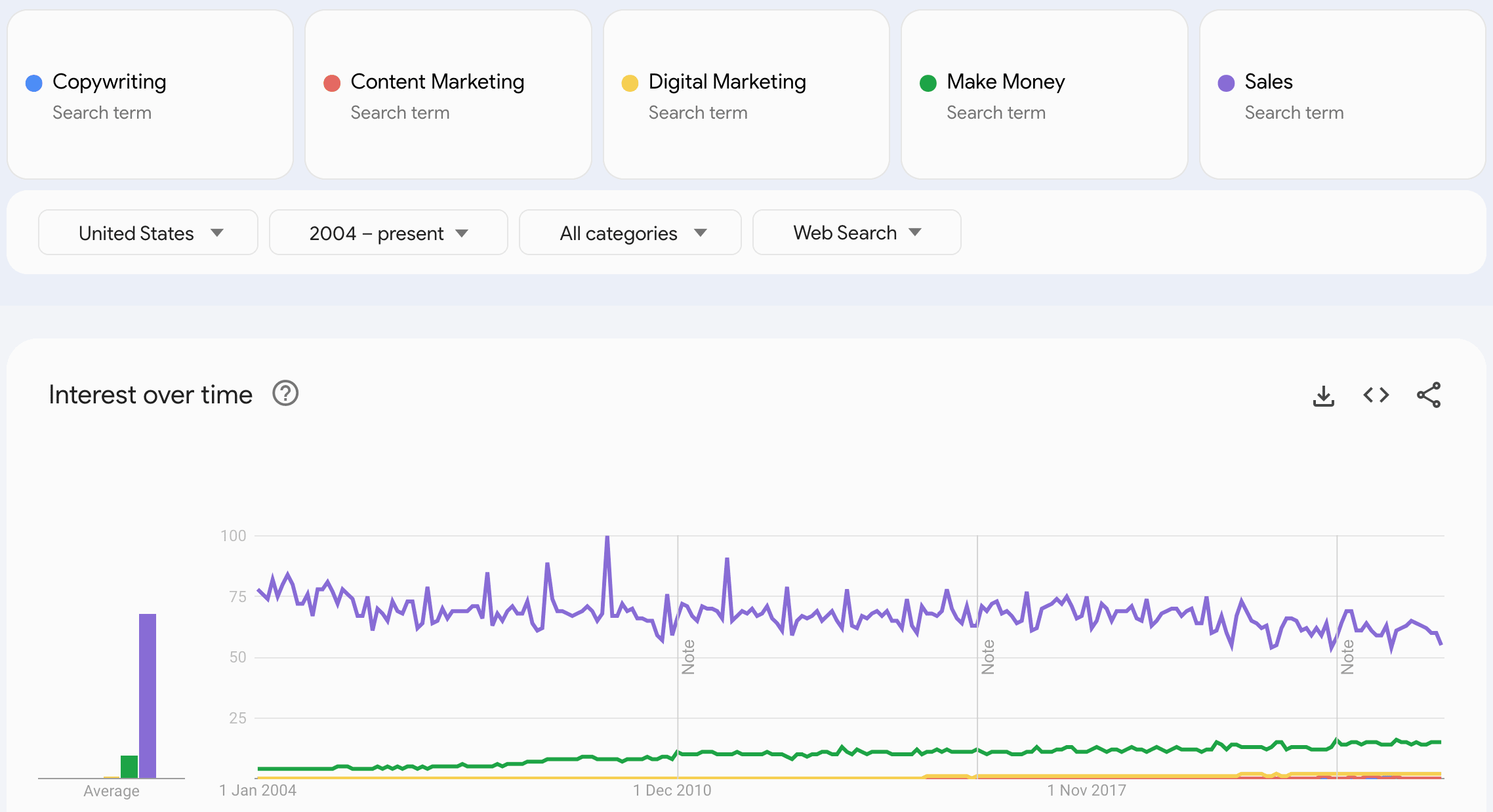 Copywriting → Content Marketing → Digital Marketing → Make Money → Sales