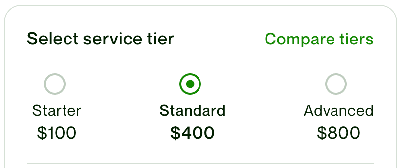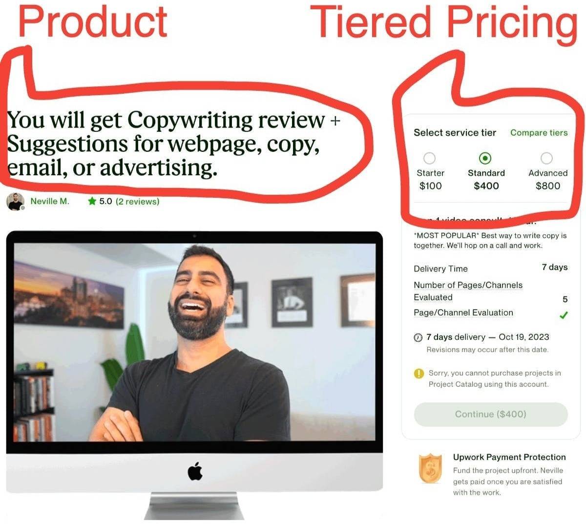 During the experiment I found on UpWork you can offer "tiered products", and I just made one today - Check it out here: