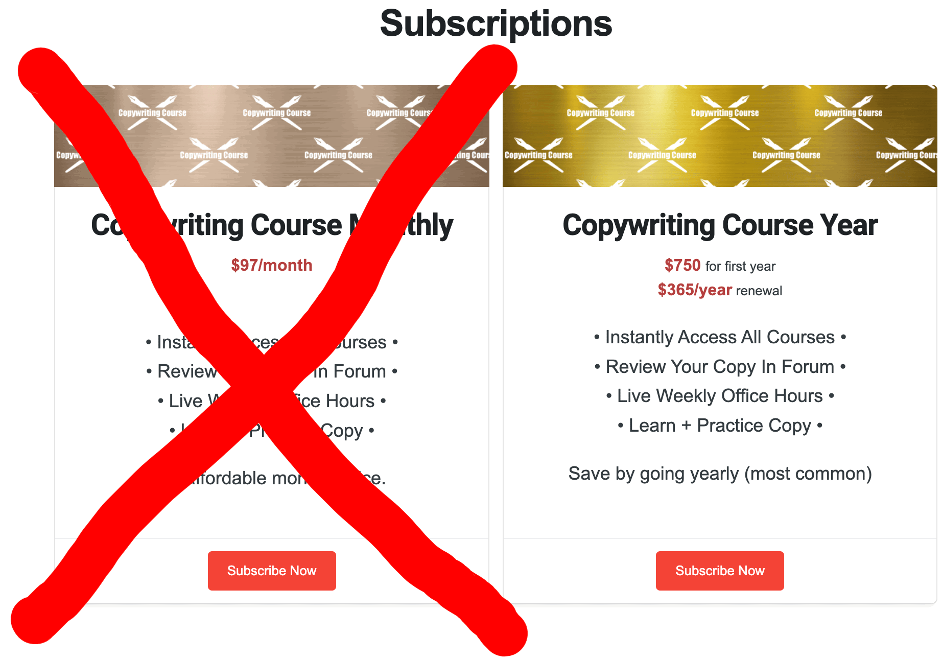 We are removing the Monthly option for Copywriting Course and this month it's gone: