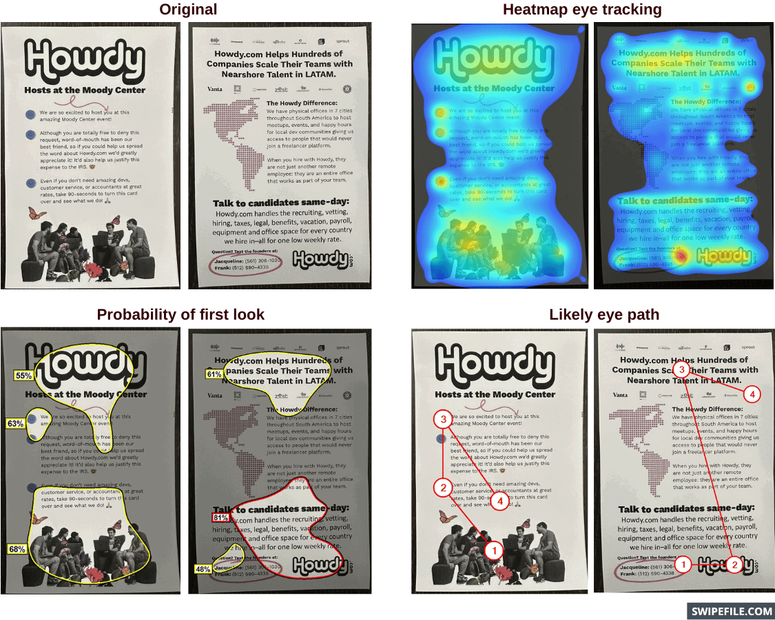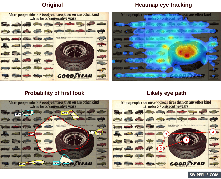 The eye tracking charts show it goes for the tire first then people glimpse at the individual cars: