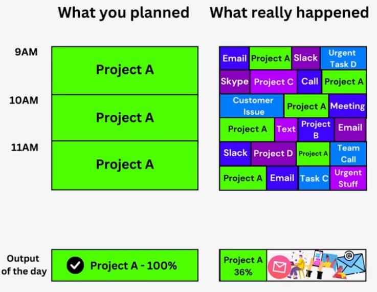 This is called a “Productivity Trap” where you start your day, but get caught up in a whirlwind of tasks that seem productive but are all over the place 😵💫