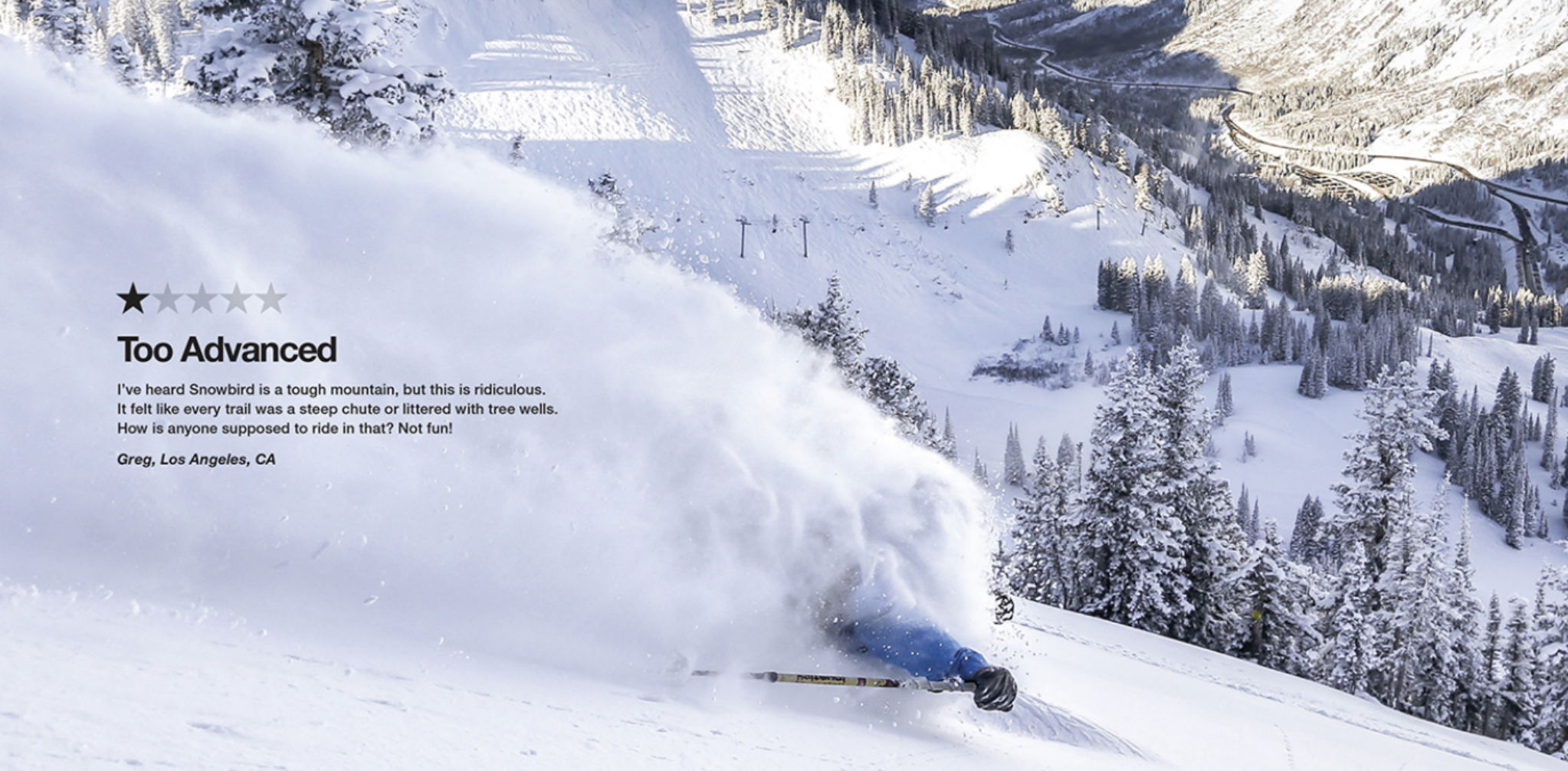 The person is complaining it's "too advanced" which actually makes it desirable to advanced skiers: