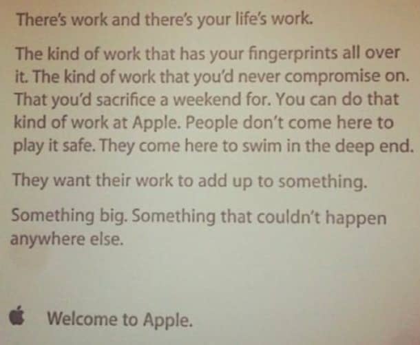 This is the message Apple would send to all of it’s new employees to encourage them to be a little crazy and obsessive over the products they create: