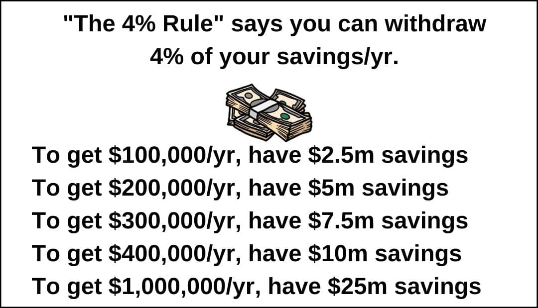 So if you want to withdraw $100,000/yr, you would need $2.5m in savings: