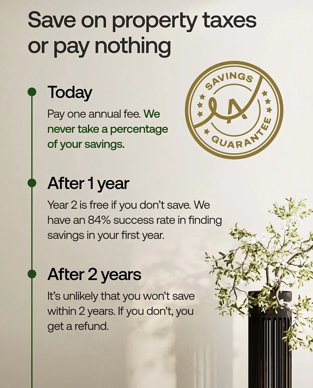 I like this "timeline ad" that shows exactly what happens if you buy this tax reduction service: