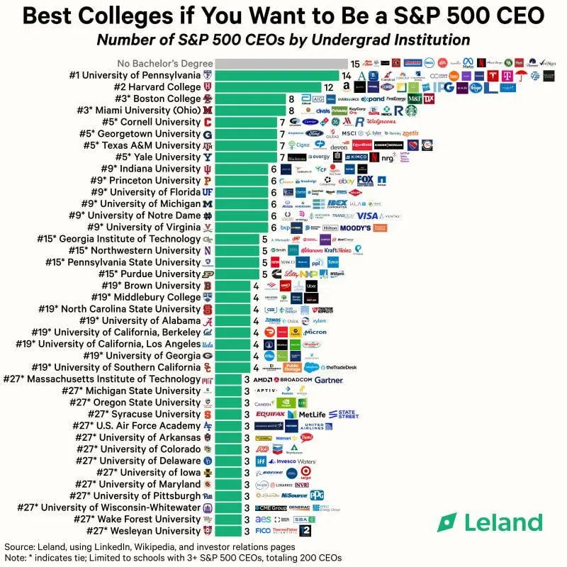 If you take all the top 500 CEO's, most of them had a college degree from one of the top 20 universities, but many of them had NO college degree!