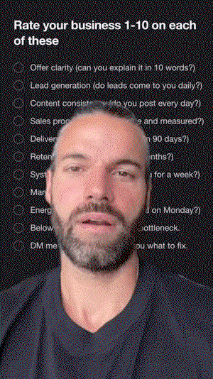 The video says rate your business 1 - 10 on each of these: