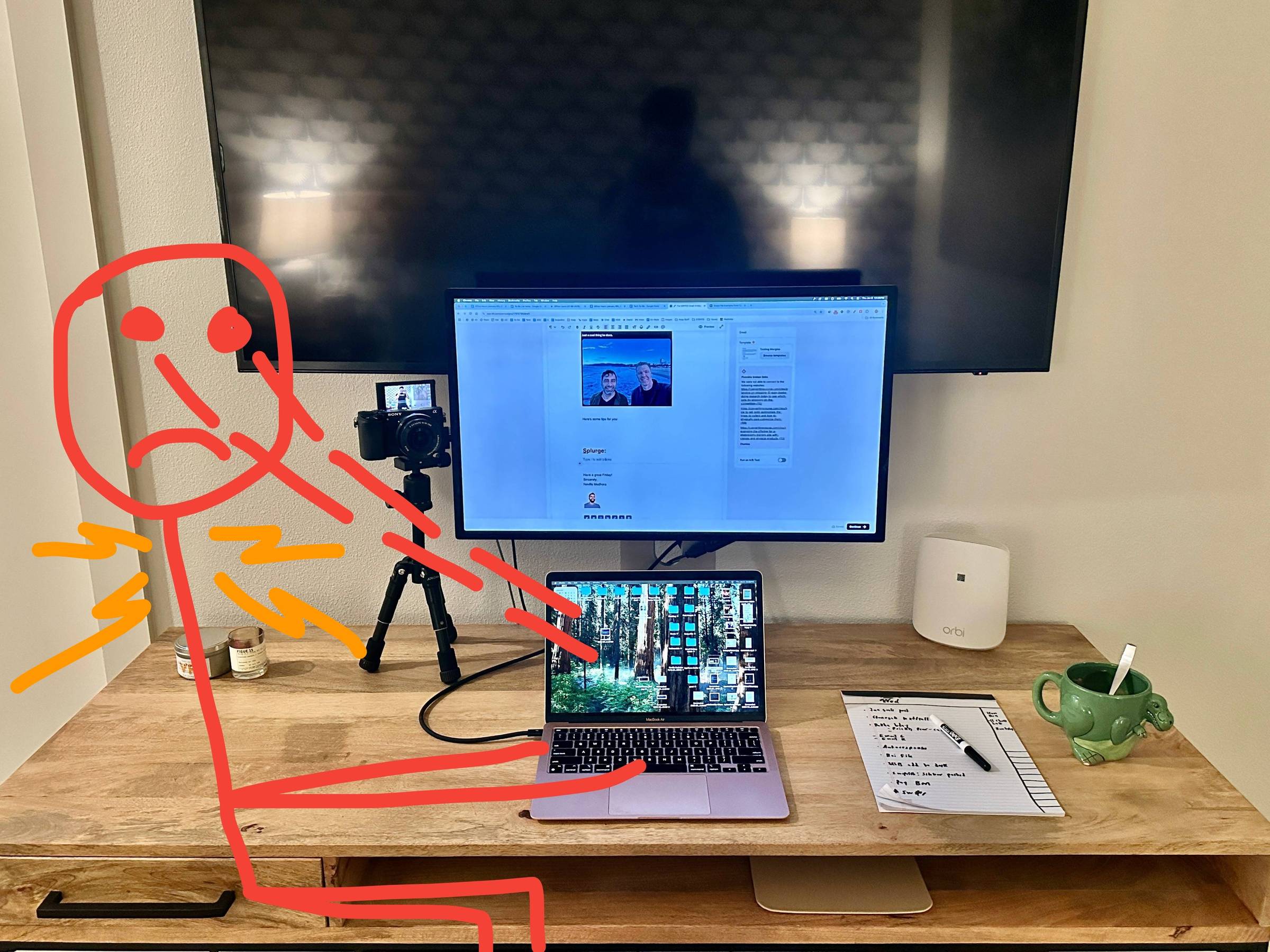 The problem is I just end up using my 13" small MacBook Air (which I love) but isn't good as using a giant computer screen, and I have to crane my neck downwards.