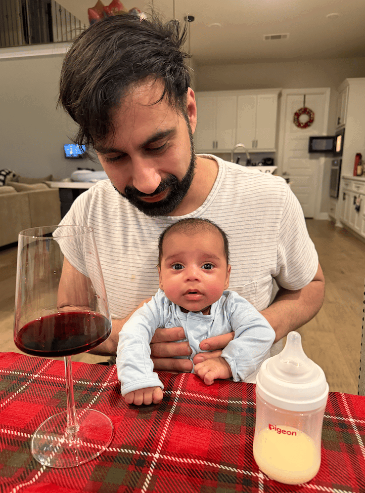 I love pics when it looks like he's doing adult things like sitting at the table or drinking wine 🤣