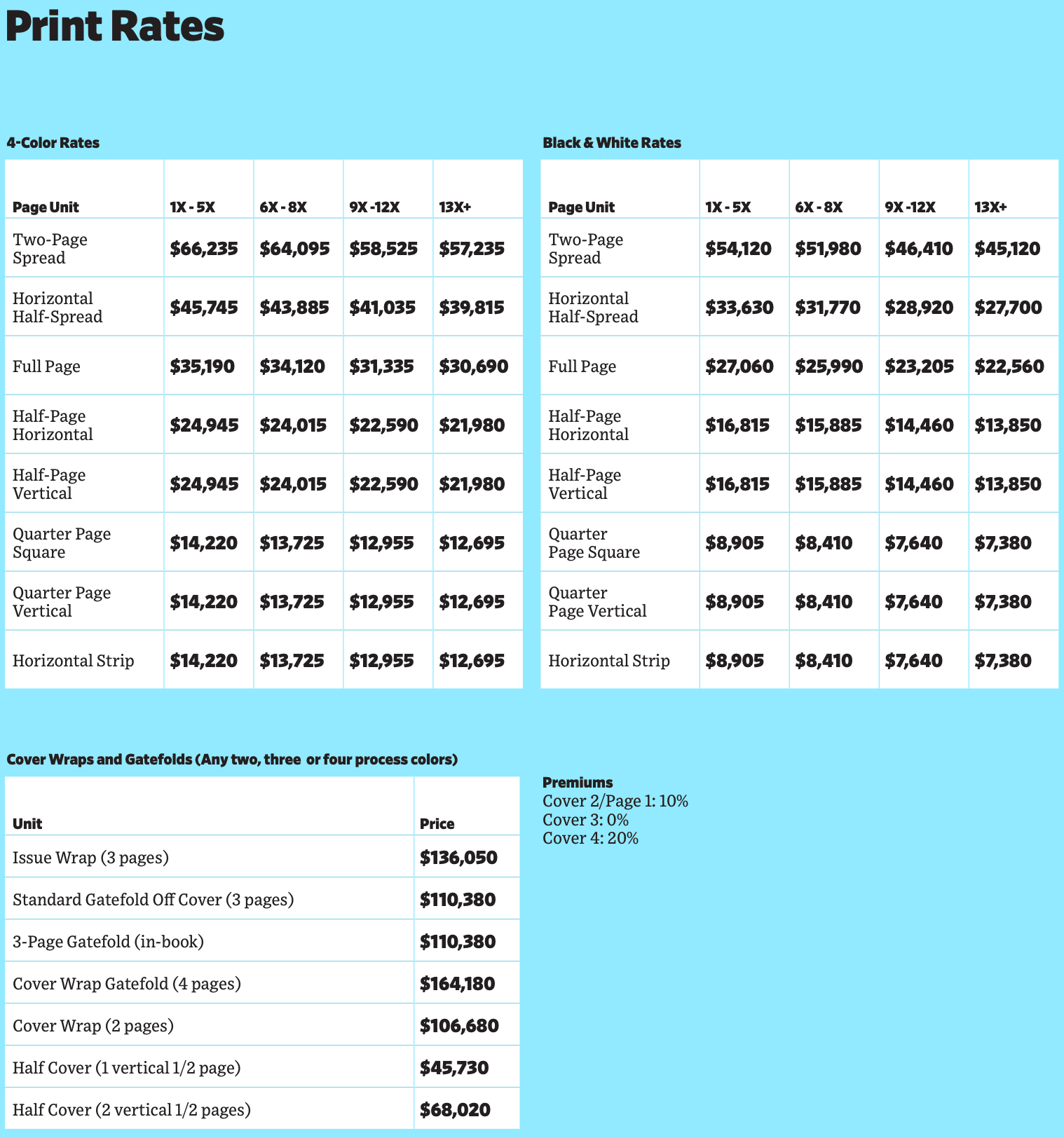 Here's something interesting and juicy, these are the ad rates from a company called AdAge for some of their different newsletters: