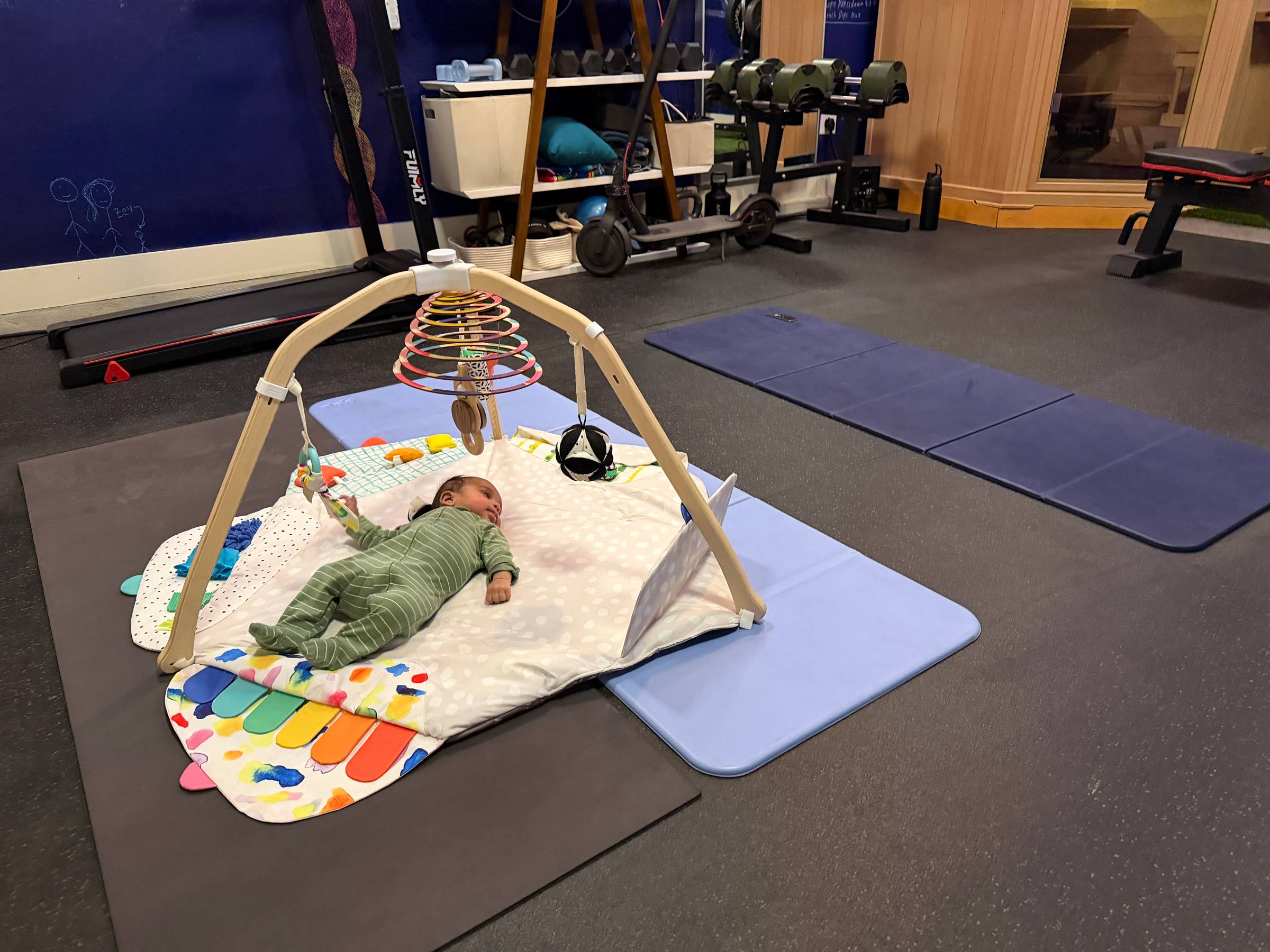 I took his baby gym into my real gym to workout together 🤣