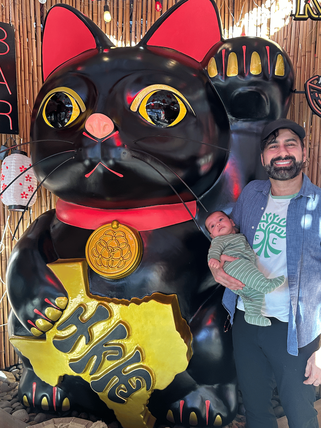 With a big Chinese Good Luck Cat: