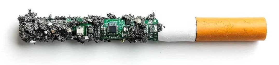 This image shows digital addiction. I love it because it's got zero words but you instantly know what it means: Our devices are the new smokes.
