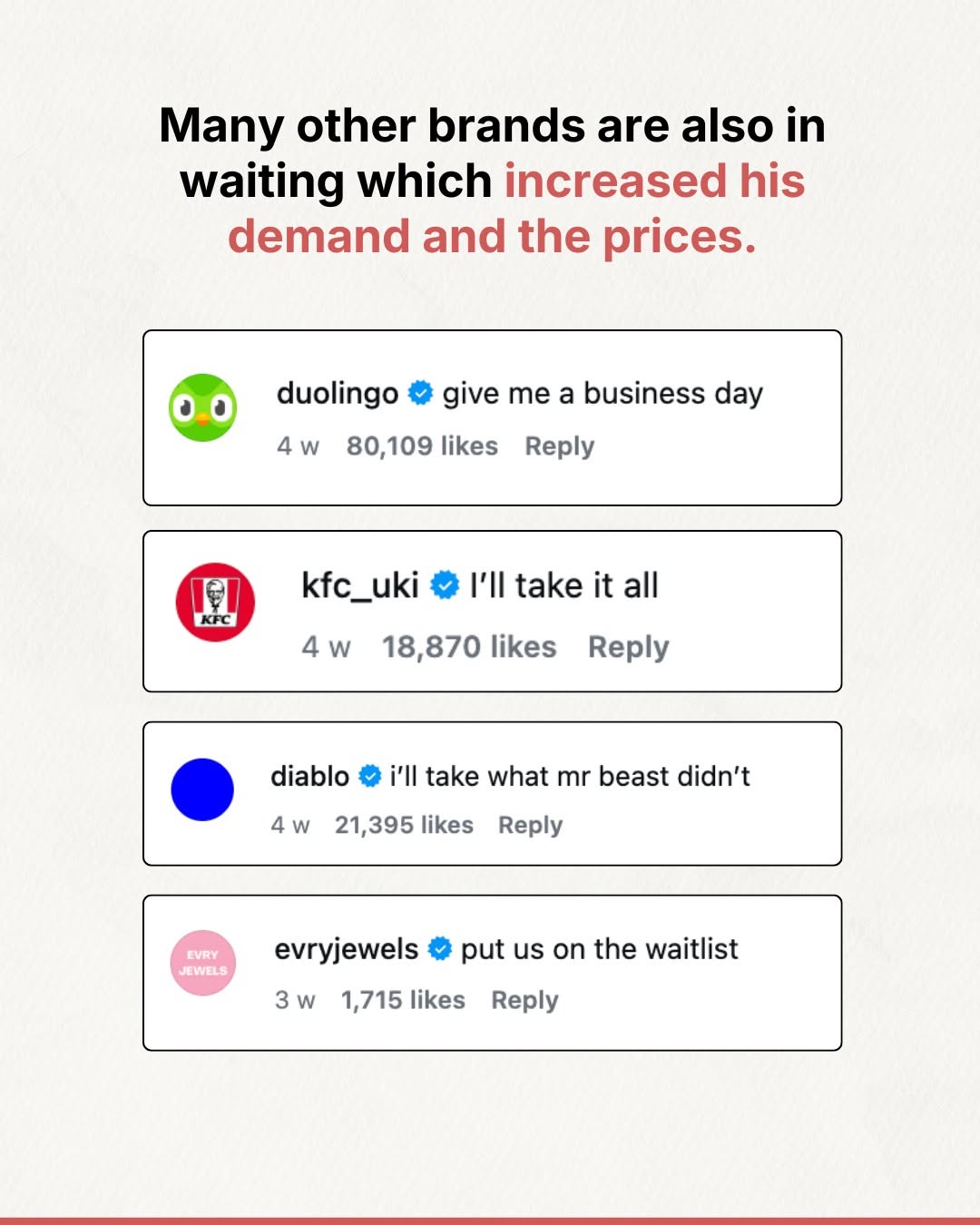 - Screenshots of huge comment-section demand (big brands piling in) create instant social proof and justify raising rates.