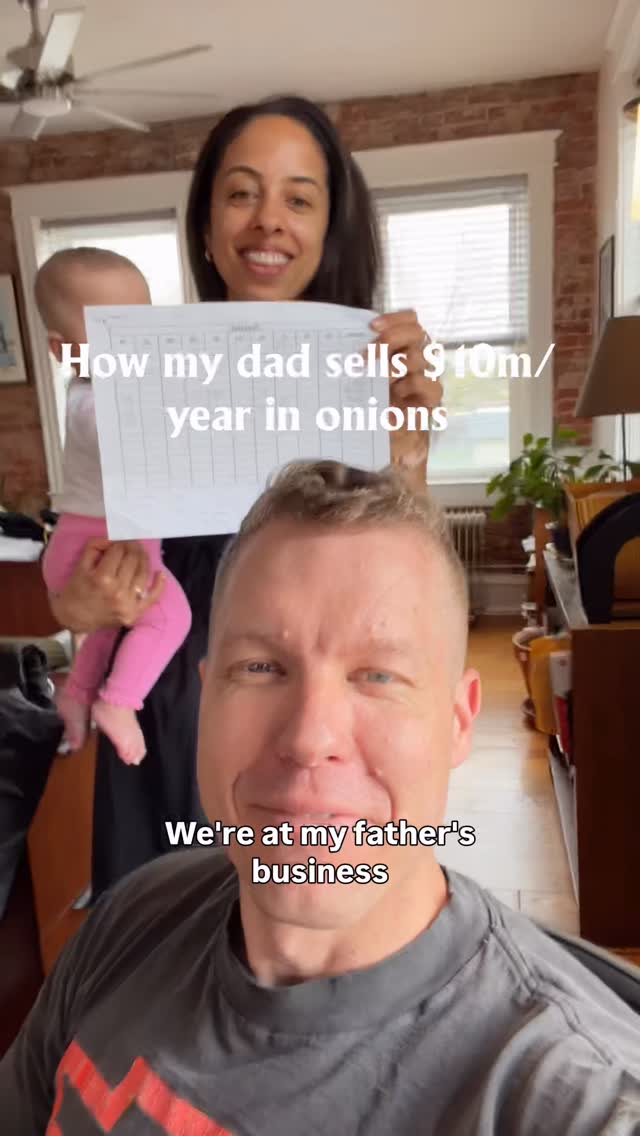Most people think you need a fancy SaaS dashboard, a 40-page pitch deck, and a neon coworking space to make real money. Then you see this Instagram shot: a simple homey office, baby on hip, paper spreadsheet, and a guy casually explaining how his dad moves $10M a year in onions with two phones, a fax, and a basic computer. This is the kind of picture that slaps you and says, “Hey, business isn’t complicated… you are.”